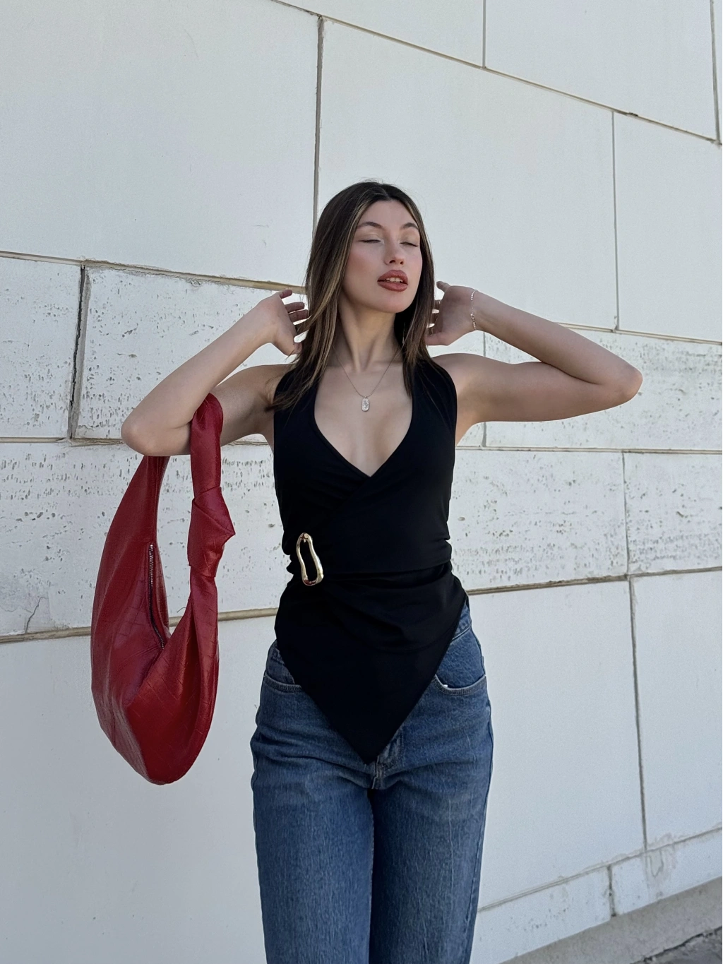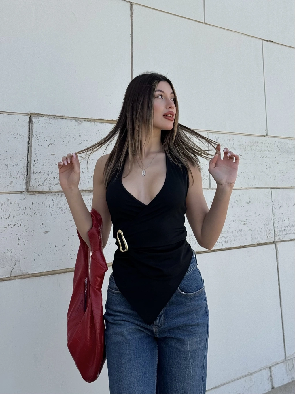 • Ürün Adı: Asimetrik Kesim Siyah Gold Tokalı Bluz