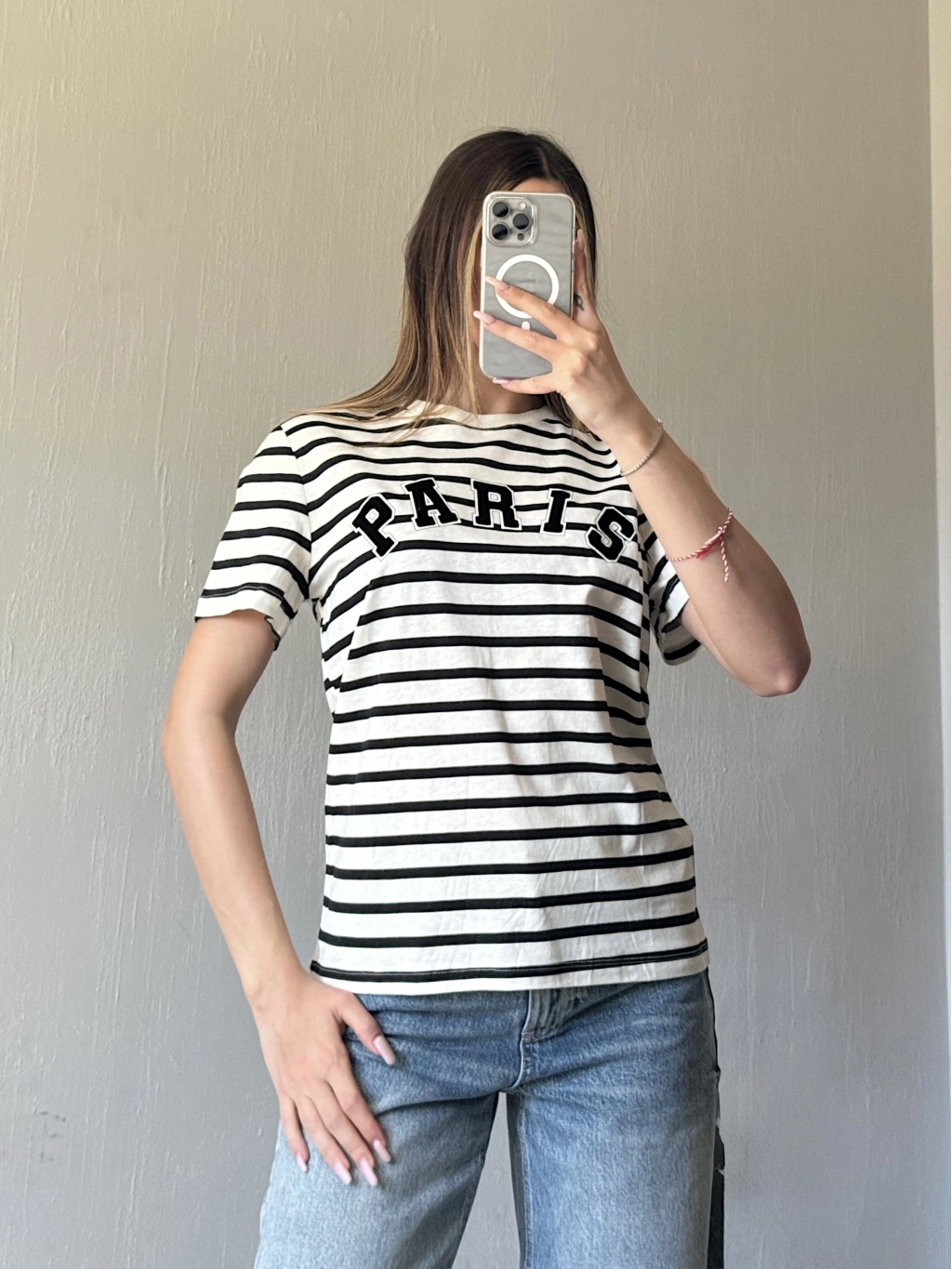 • Ürün Adı: Çizgili Paris Nakışlı Tshirt