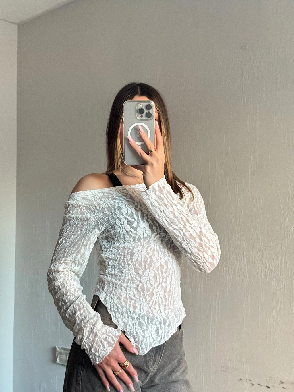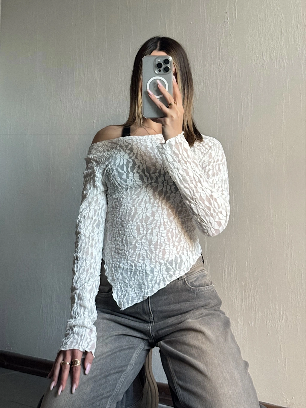 • Ürün Adı: Dantel Asimetrik Kesim Bluz Beyaz