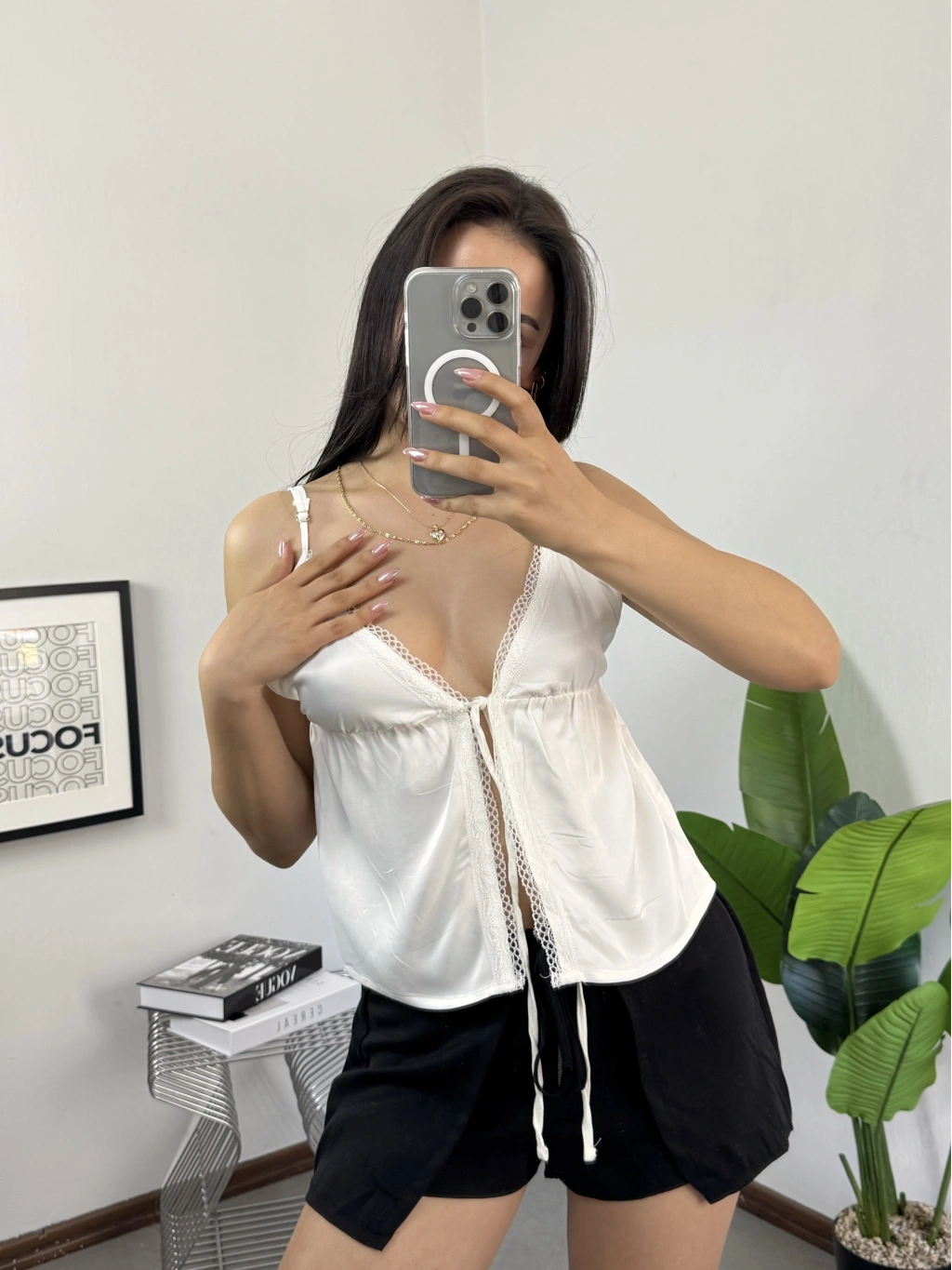 • Ürün Adı: MNG Orj Marka Beyaz Dantel Bağlamalı Crop Bluz
